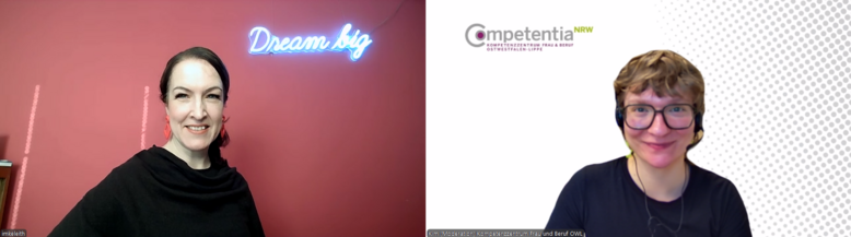 Oben: Referentin - Zuzana Blazek, Expertin für Employer Branding, Unternehmensberaterin und Speakerin mit eigener psychotherapeutischer Praxis in Köln | Petra Mattes - Projektmanagerin, Kompetenzzentrum Frau und Beruf OWL
