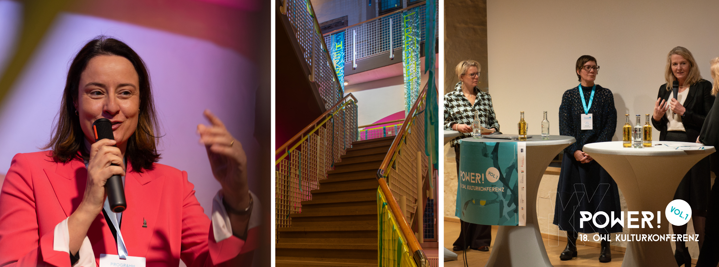Nicht zuletzt gebührt unser Dank den aktiven Teilnehmenden, die in den Laboratorien – ausgehend von realen Bedarfen des Kulturbetriebs – vielfältige neue Ideen Vorschläge und Entwürfe erarbeitet haben, mit denen wir gemeinsam die folgende 19. OWL Kulturkonferenz „Power! Vol. 2“ im Sommer 2026 gestalten werden!