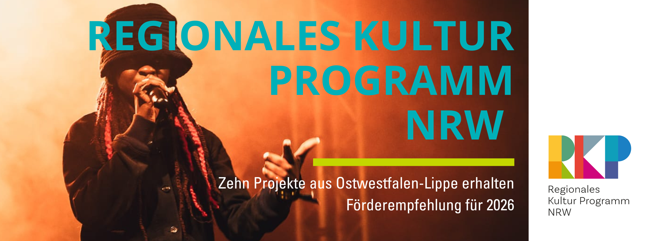 Das Land Nordrhein-Westfalen hat auf Grundlage der Juryentscheidungen Ende 2025 zehn Projekte aus der Kulturregion Ostwestfalen-Lippe zur Förderung im Rahmen des Regionalen Kultur Programms NRW empfohlen.