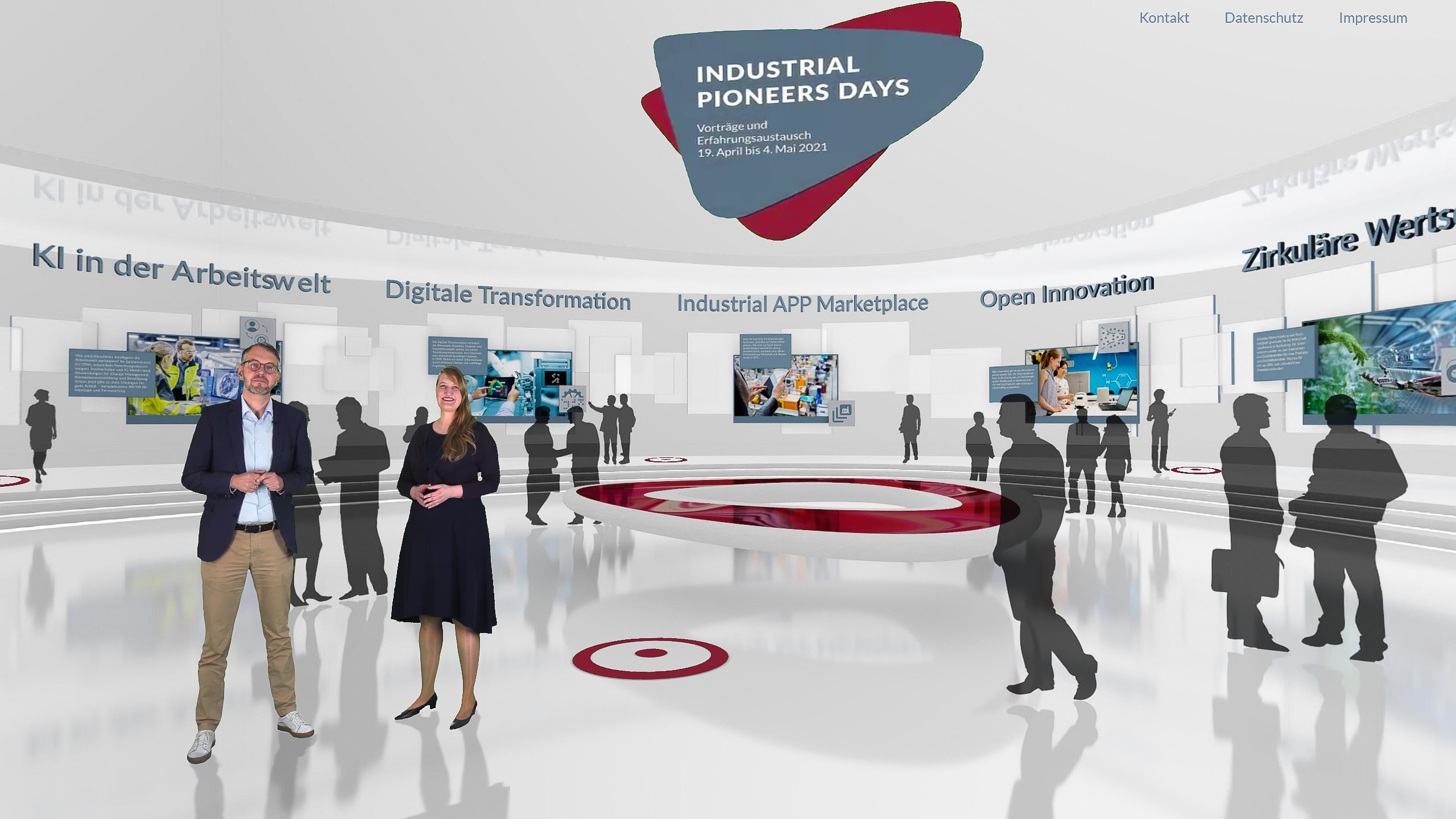 Die Forschungsansätze und Anwendungen sind für die Besucherinnen und Besucher übersichtlich in zehn virtuellen Themenräumen aufbereitet. Themenfelder sind Maschinelles Lernen, Digitaler Zwilling, Digitale Plattformen, Industrial APP Marketplace, Künstliche Intelligenz in der Arbeitswelt, Digitale Transformation, Open Innovation, Zirkuläre Wertschöpfung, Smart Food Technologies und Zukunftstechnologien Bau. In jedem Raum sind sechs bis zwölf Impulse zu finden, die in Form eines Videos, einer interaktiven Webseite oder einer 3D-Animation präsentiert werden.