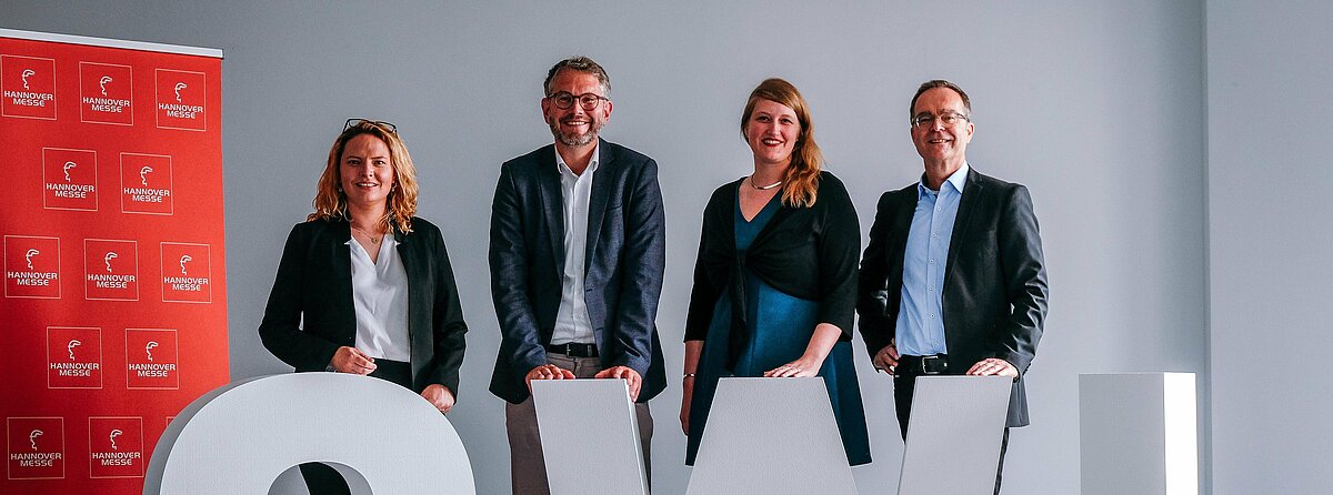 Marie-Theres Wahle, Director Public Affairs Nordrhein-Westfalen Messe Hannover, Wolfgang Marquardt, Prokurist OstWestfalenLippe GmbH, Almut Rademacher, Geschäftsführerin OWL Maschinenbau, Günter Korder, Geschäftsführer it’s OWL Clustermanagement.
