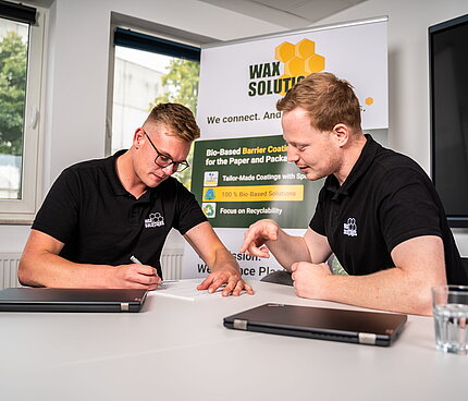 Als die Alfred Willich Produktions GmbH vor einigen Jahren begann, mit natürlichen Wachsen zu experimentieren, war nicht absehbar, dass daraus ein eigenständiges Unternehmen mit einer klaren Mission entstehen würde: fossile Kunststoffe in Verpackungen ersetzen. Was zunächst als technische Spielerei begann – ein gemeinsamer Versuch von Willich-Geschäftsführer Volker Willich und einem Kunden – entwickelte sich rasch zu einer vielversprechenden Technologie, die vom Start-up Wax Solutions vorangetrieben wird. „Manchmal muss man einfach mal loslegen und gucken, was rauskommt“, sagt Co-Founder Dennis Kleine-Tebbe rückblickend. „Nach ein paar Versuchen war klar: Das könnte funktionieren.“