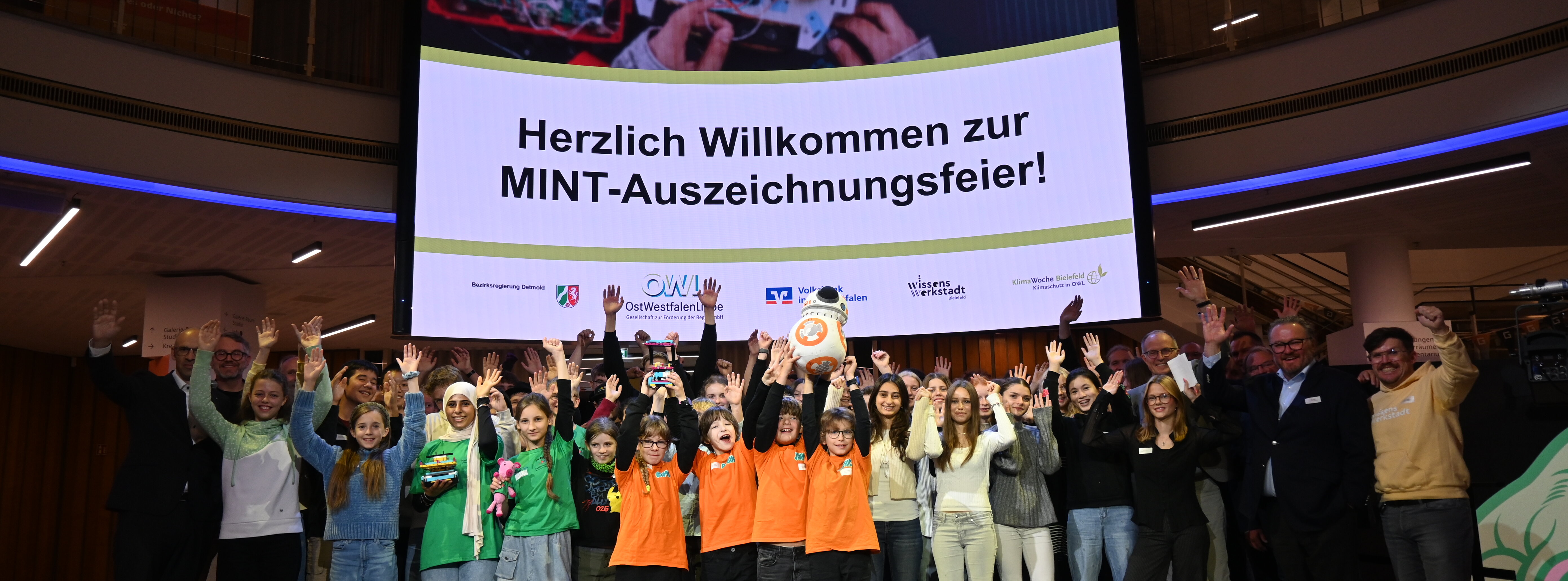 Die MINT-Auszeichnung wird seit 2012 vergeben und ist eingebunden in die MINT Community 4.OWL. Das Projekt macht unter Förderung des Bundesministeriums für Forschung, Technologie und Raumfahrt Chancen der digitalen Arbeitswelt für Jugendliche erlebbar. „Unsere Unternehmen brauchen motivierte Nachwuchskräfte“, sagt Björn Böker, Geschäftsführer der OstWestfalenLippe GmbH. „Mit unserer MINT Community 4.OWL haben wir ein Netzwerk mit über 70 außerschulischen Lernorten in ganz OWL aufgebaut, in denen Jugendliche technische Berufe erleben können. Die heutige Auszeichnungsfeier zeigt, wie gut die Angebote funktionieren und wie viel Forschergeist in unserem Nachwuchs steckt.“